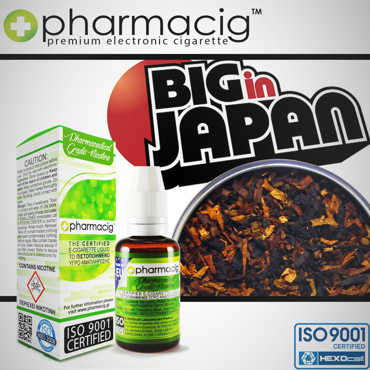 ISO 9001 Quality Certified European Product Pharmacig liquids are produced in the EU by HEXOcell Laboratories using the highest quality ingredients available.