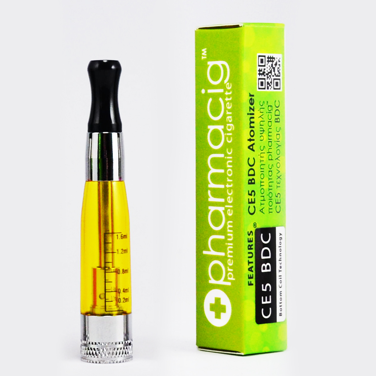Complete, ready-to-vape CE5 bottom dual coil (BDC) clearomizer with pre-installed 1.8Ω coil.
